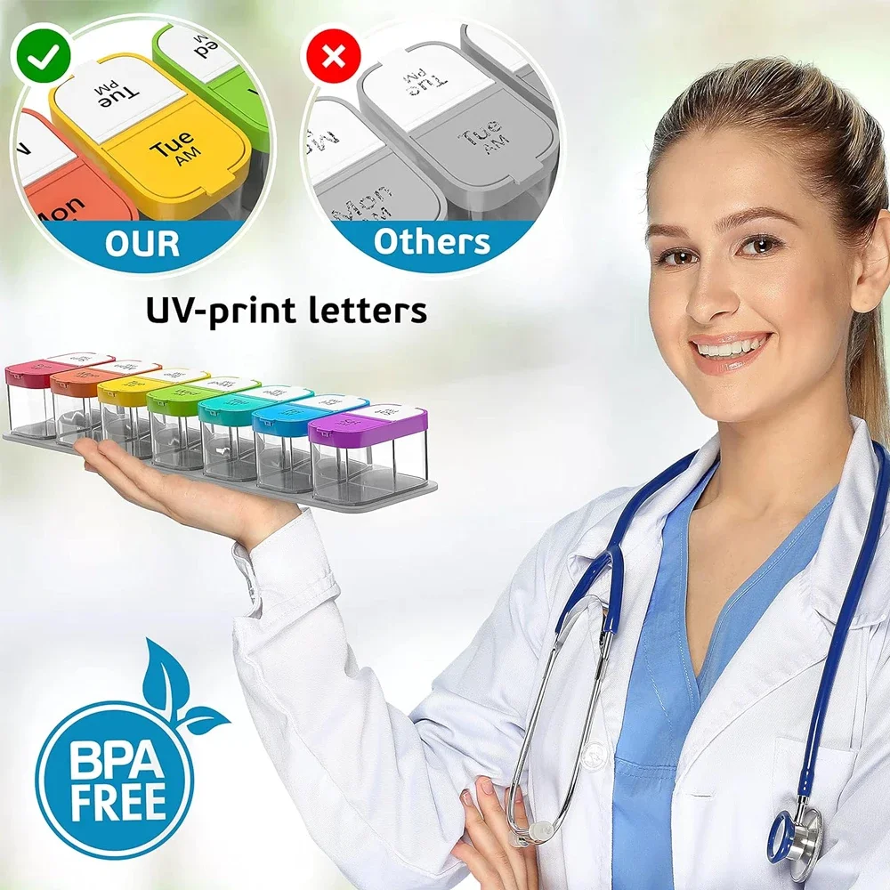 Crafted from food-grade, BPA-free plastic, this durable pill box is ideal for daily medication plans, diabetic care, or supplement cycles. The easy-to-open lids are perfect for those with arthritis or limited dexterity, while the moisture-proof seal keeps your pills fresh and protected.